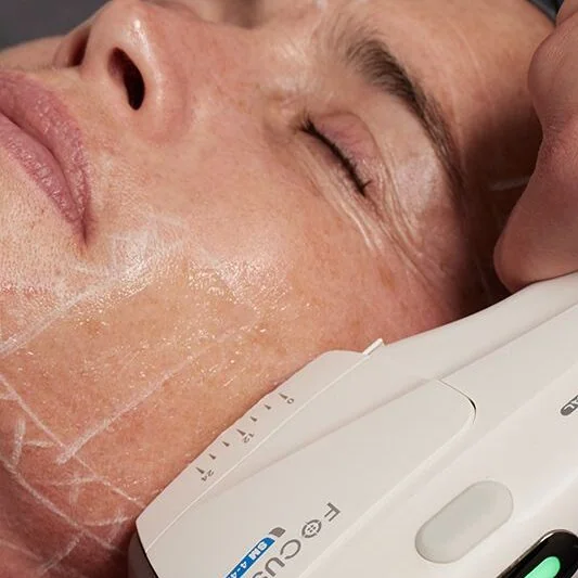 Focused ultrasound energy lifts and firms the skin over time.